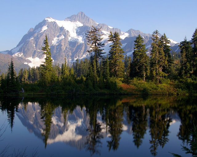 As usual, Paul hammers a great answer! Just to emphasize his point about taking 542 up to the Heather Meadows area, this shot was taken right from the road -- it is Mt. Shuksan reflected in Picture Lake (I am not kidding about the name of the lake):