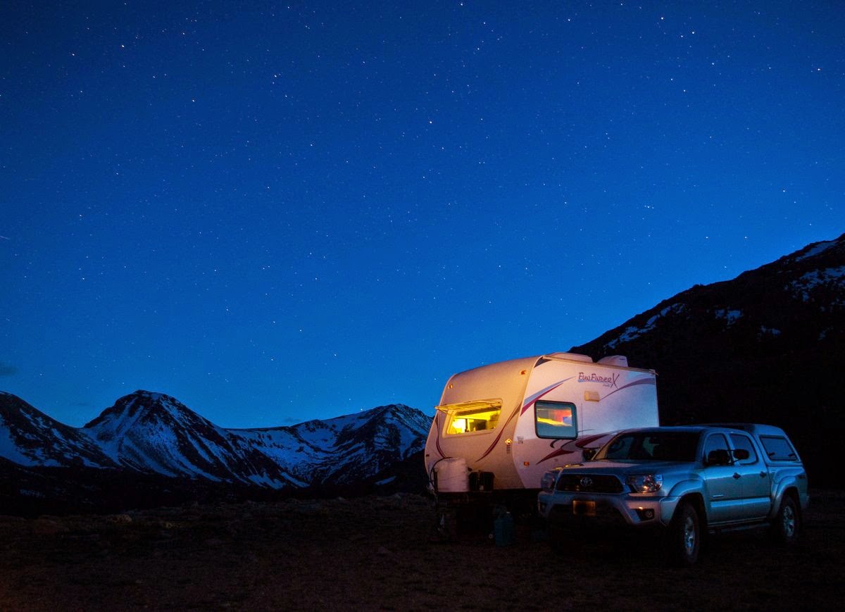 Here is one of our more recent Milky Way experiences -- it is not a great shot because I illuminated the trailer with an LED flashlight for a few seconds, giving it an odd blue color -- but the sky is pretty close to the real thing:
