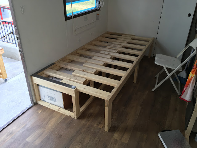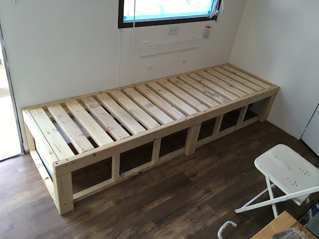 This is where I am at. Building a custom sliding couch bed where the dinette used to be. If you want to know more about any of these projects please visit the blog which has more/larger pictures. Thanks!