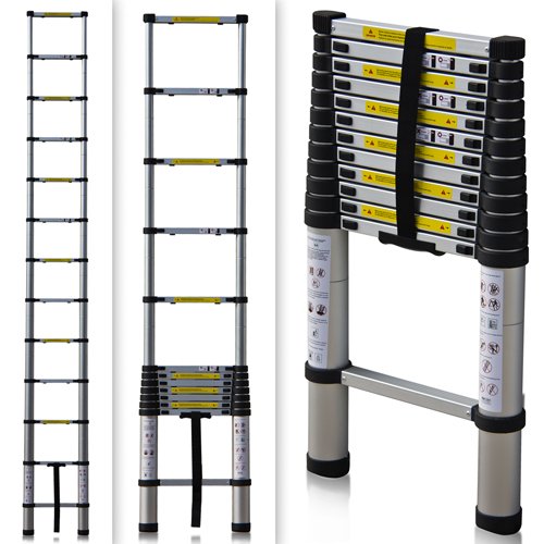 Telescopic ladders are very compact and lightweight. But you have to have something to lean against, and you have to keep your fingers out of the way when you let them down.