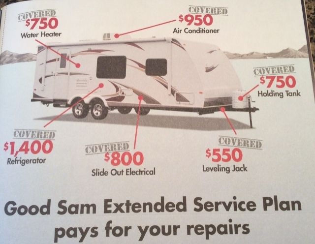 Flipping through the latest Trailer Life magazine I stopped on an ad for the GS Extended service plan. The image at the top of the page has about 6 call-outs and lines leading to spots on the RV in the image.