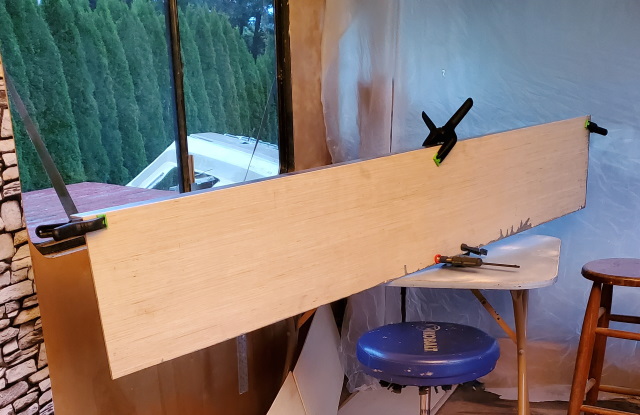 I had posted a couple of pics last week with the plywood cut roughly to size along the side.