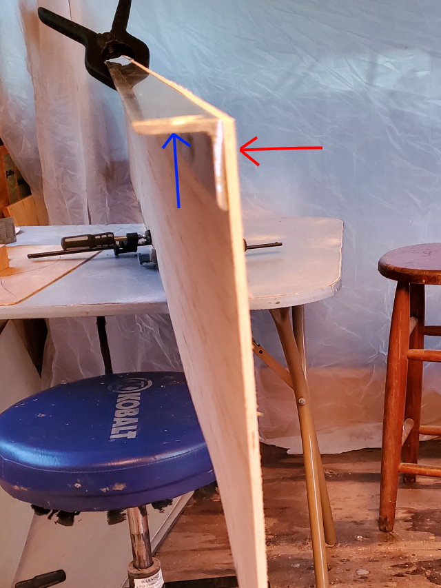 - This shows the end of the panel. There is a piece of aluminum angle at the top on the inside. The Red arrow shows where there will be some screws holding the plywood to the aluminum.