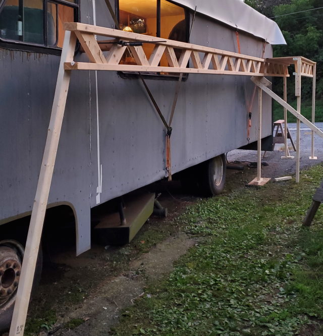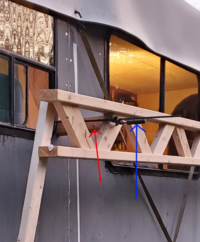 - Since I work alone, I needed 6 hands, but only had 2. I did manage to secure the first truss to the side wall of the coach, at the pilot's window.