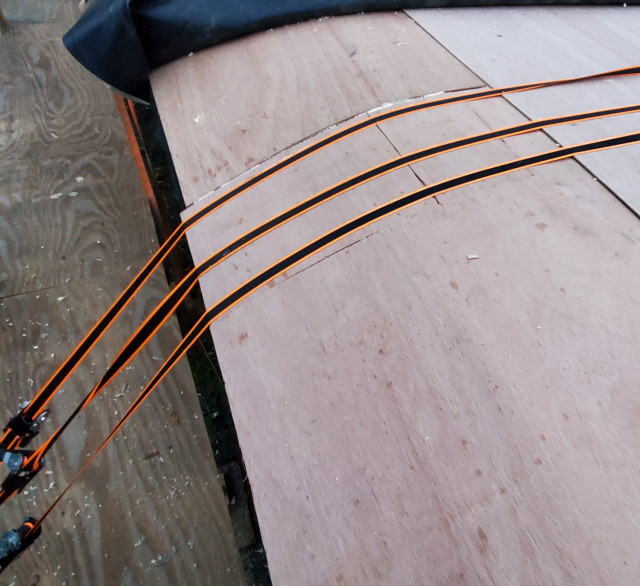 - After getting it all cleaned up, I applied new adhesive, and then held it down with my nylon straps. The plywood took the bend nicely.