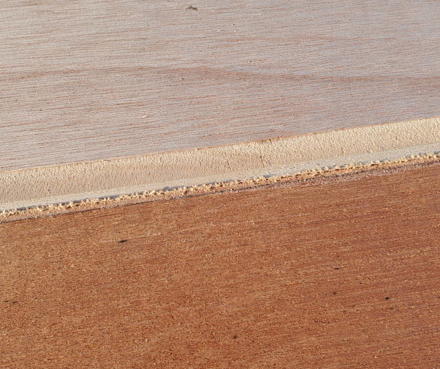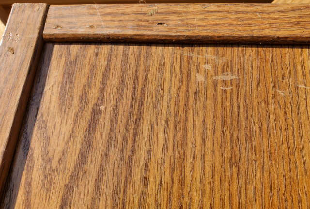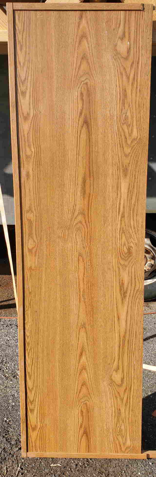 Front side with oak looking vinyl glued to 1/8" plywood.