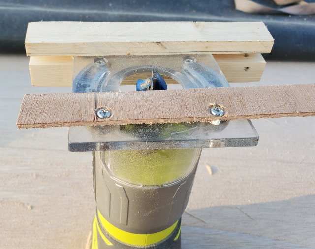 - Here's the setup I attached to my router to help guide the router and keep it steady and straight while cutting the taper.
