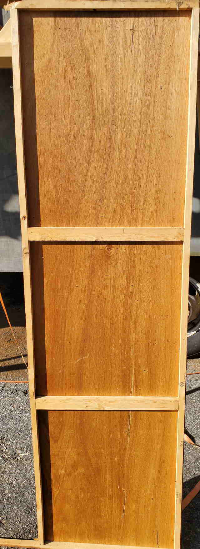 That left just a small edge at the top and the bottom, with the majority removed. - This is the front side, which had "trim" around the edges. This was also stapled, over the top of the "plywood".