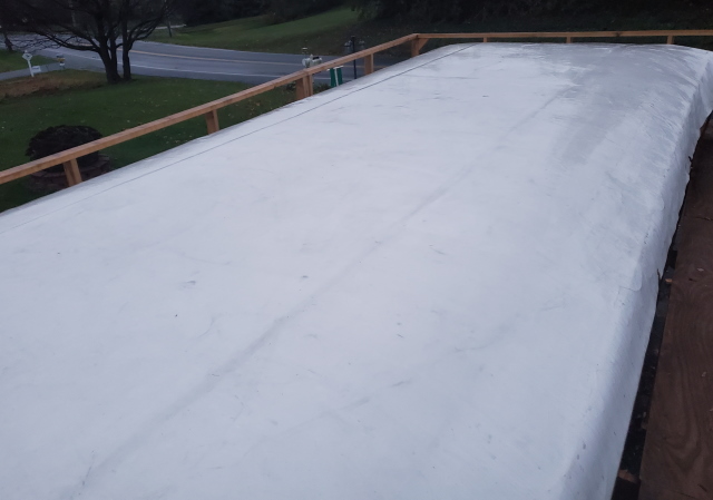 Our son came over today, and we glued the TPO down to the plywood.! Wahoo.