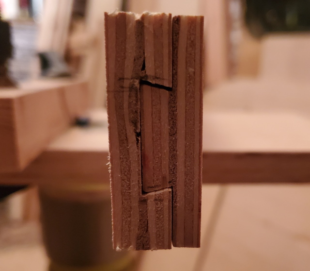 It's an inner ply, and it isn't affecting the overall thickness of the plywood, even though it looks kind of goofy.