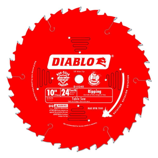 I picked up a 10" saw blade at the Home Depot, for my table saw. It's a Diablo brand, 24 teeth and primarily used for ripping.