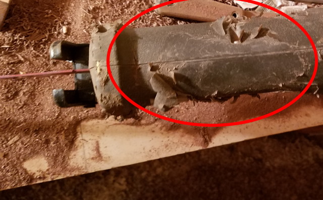 With some other stuff I needed to get done today, I ran out of time to plane the split black walnut, so that will be part of tomorrow's work. - Here is a pic of my Ryobi reciprocating saw. The area in the circle is where this puppy gets hot after using if for a while.