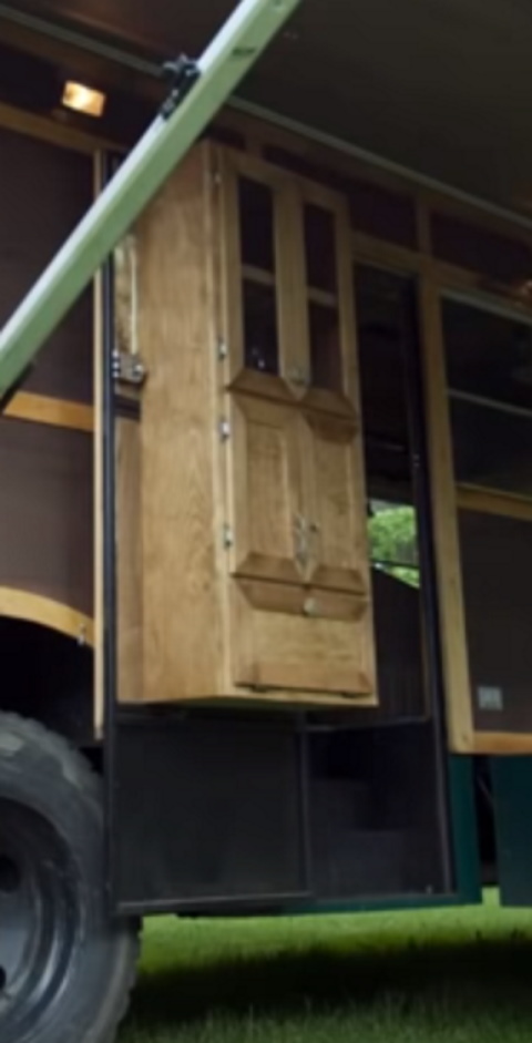 Face it, as humans, some times we are just tough to please. Lol. - Also found on this same bus, the use of the interior surface of the entry door, to hold a cabinet. Looks like that would be about 12 inches deep, maybe a little more.