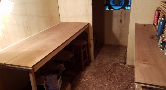 However, with the boxes sliding out like this, that would provide a surface to put things on when they are out. Add a board on top that is hinged, and would flip out, and now you've got a 4 foot wide counter.