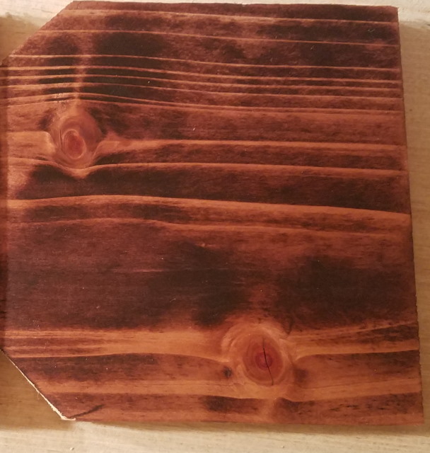 - Next step was just to apply some stain. I used some Minwax Red Mahogany stain. Just stain only. It is not stain and finish in one. This stain will require a coat of something over top of it, after the stain dries.
