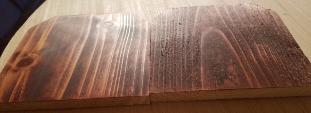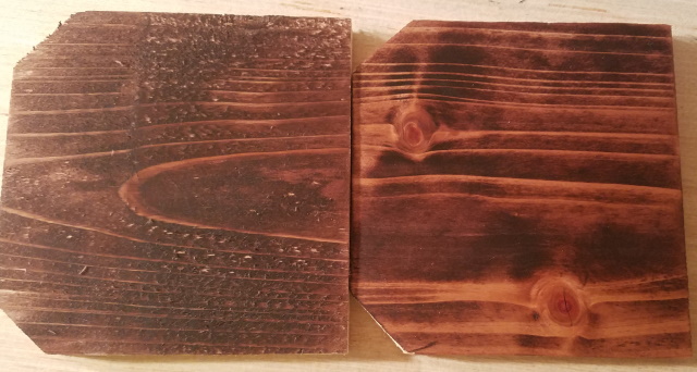 However, this gives an idea of how things work with stain. - So, I took the first piece, and sanded it until all the stain was gone, and we were back to raw wood.