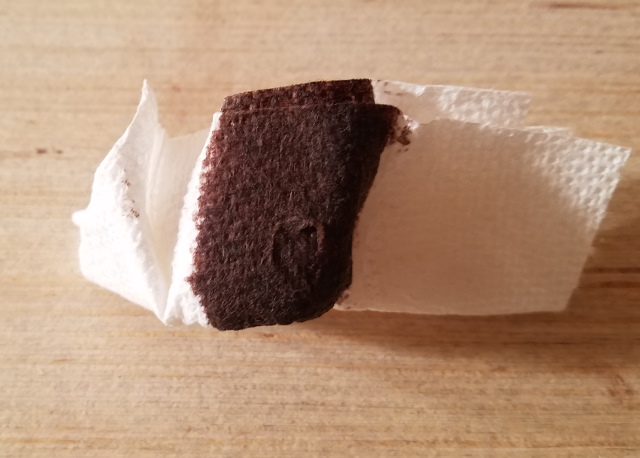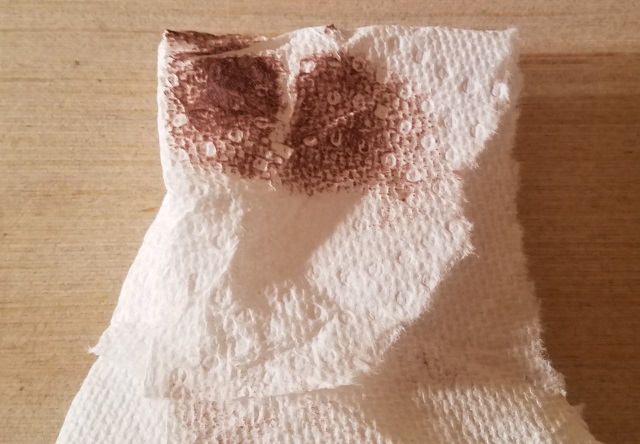 This is the paper towel I used to wipe off the excess stain from one of the test boards. As you can see, it didn't pick up a huge amount.
