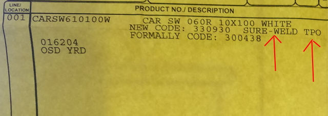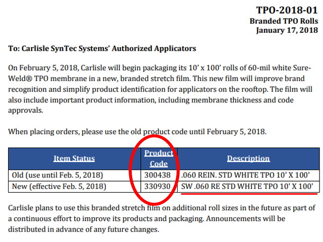 Here is a memo from Carlisle with product codes, which match what is on my receipt.