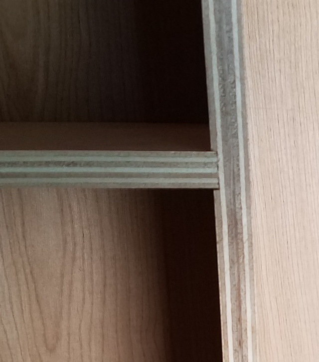 These shelves are not permanently attached yet. I only have one screw holding these shelves in place, while the glue sets up. - I have never liked using just a standard butt joint, with or without screws, so even though this has very little depth of dado, it still adds some mechanical advantage, in addition to the glue, and the Kreg screws.