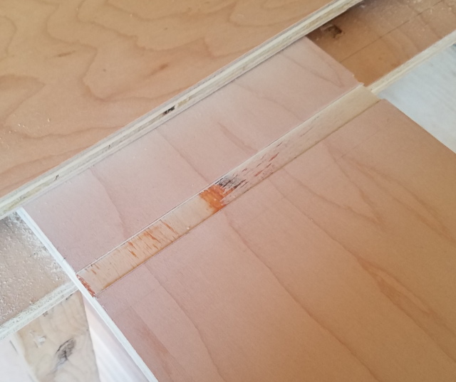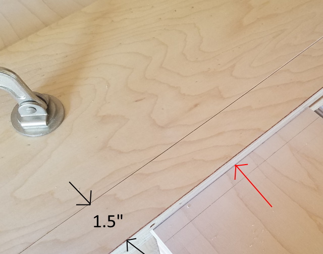 - Then I removed the 1.5" piece of plywood, and voila, I now have the exact distance from the fence to the first side of the plywood shelf. Lining up the plywood with the lines on the shelf side, is easier than trying to measure every time I want make a dado.