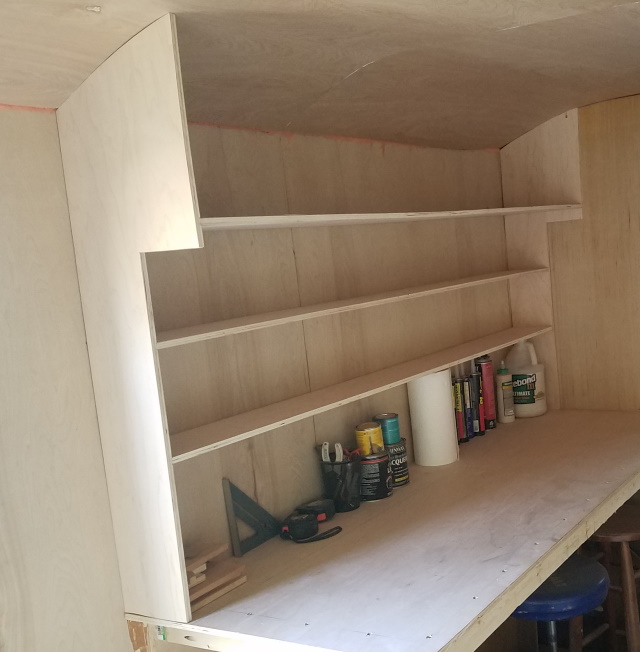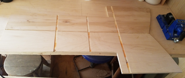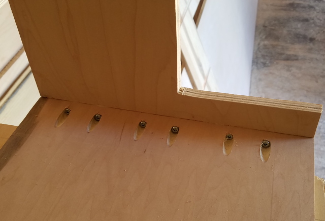 - Next was to install the screws in the shelves. I did back the drill off about 1/16", to make up for the dado depth, to make sure I did not have screws protruding on the outside of the shelf ends.