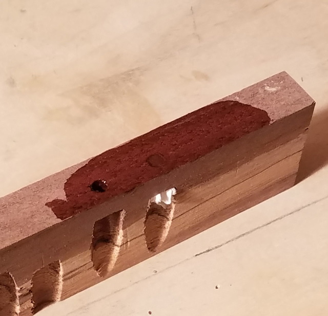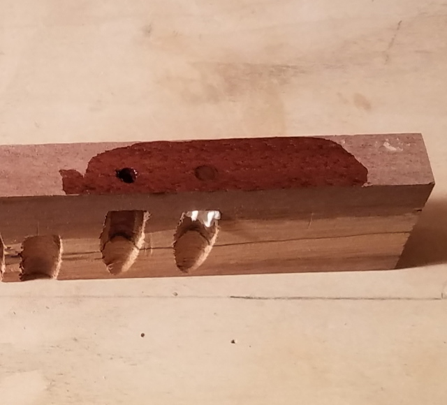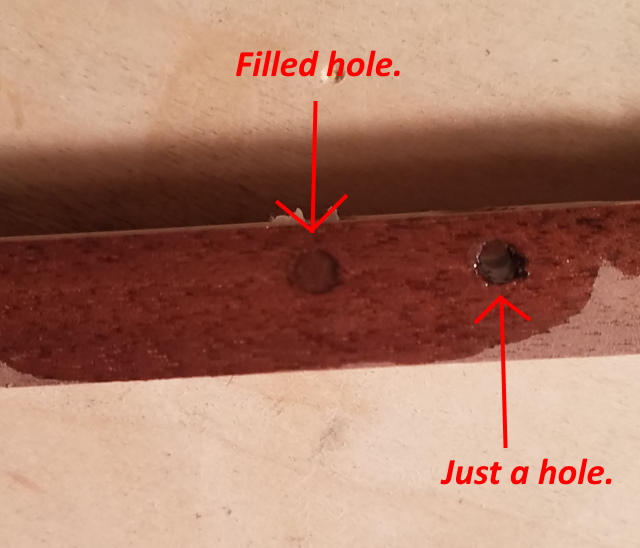 - Then, I just filled the hole that I wanted to. I also added some Lacquer to the wood, and left them to dry.