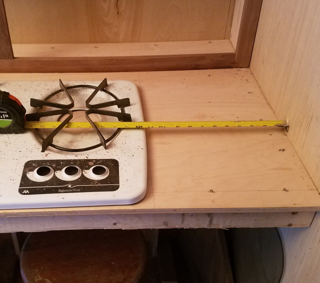 Either way, I think we'll be happy with the extra space. - Here's a pic of the opposite side, from the stove top to the end of the counter. It shows we will have about 42" of free counter space.