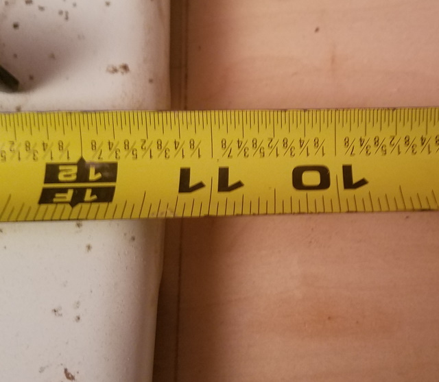 That will prevent heat from damaging anything behind the stove. - Once we pull out the tape measure, it shows that we are nearly a foot from the wall.