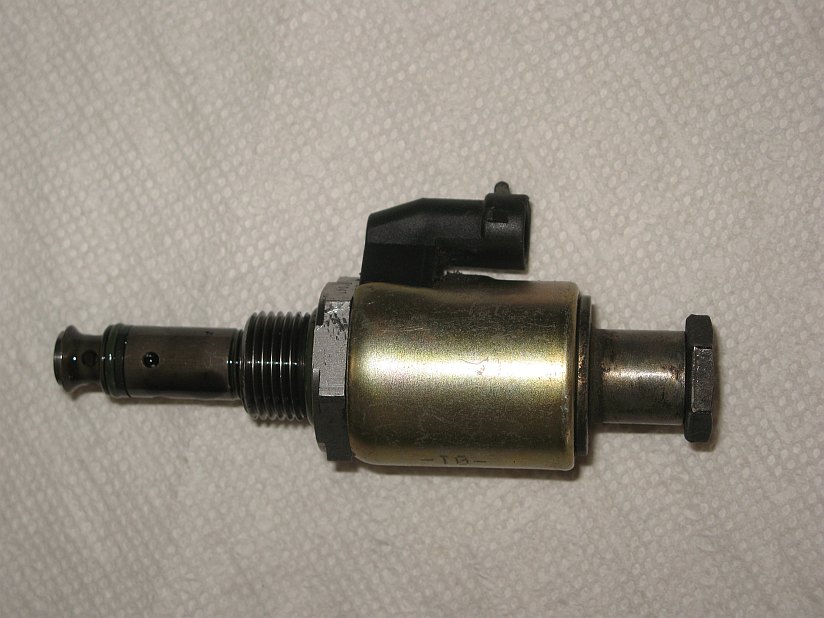 Some have asked where the IAPV is located. Here's a picture of what it looks like. The part on the left is what screws into the HUEI pump so what you see when it is installed is from the large hex to the right. The solenoid is removed by removing the small nut on the right. When that's removed, a spacer and the solenoid coil slide right off the valve. The two wire connector is on top of the coil.
