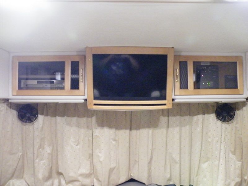 Removed the two Panasonic CRT TVs and replacing with Flat Screen LED TVs. Removed the VCR. Re-modeling the cabinets. Expecting 1-2 MPG increase after removing these "boat anchors".. :)