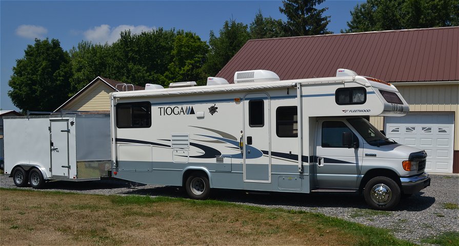 New enclosed trailer for the Harleys finally arrived. Now the're out of the weather, dirt and stones kicked up by the RV from the road, and out of site when we're off doing something else. I'll sleep better. - DrewEExplorer IIII installed Centramatic wheel balancers today.