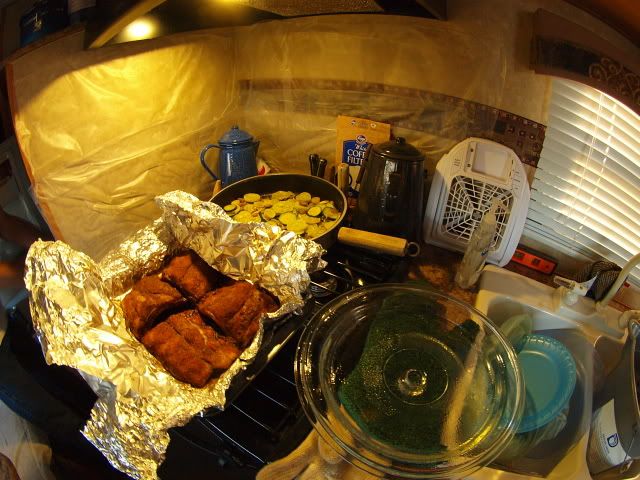 We never have electric while camping nor take a smoker so we toss them in the oven at 250 for 3 hrs.