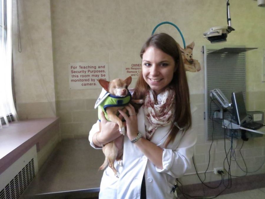 Izzy went back to the Uni of Guelph Veterinarian hospital last week for a recheck...her pacemaker is working great...8 yrs left on the battery and her Pulmonary hypertension is being managed with the Sildenafil..they were doing major renos at the hospital so we had to go into thru the cancer center..they use the wagons for stretchers and of course I couldn't resist a pic LOL..the other pic is her with one of the 4th yr students who renamed Izzy...Izzyadorable ...she was amazed at how good Izzy was having her pacer checked and the dopplers and EKG done...proud momma here LOL