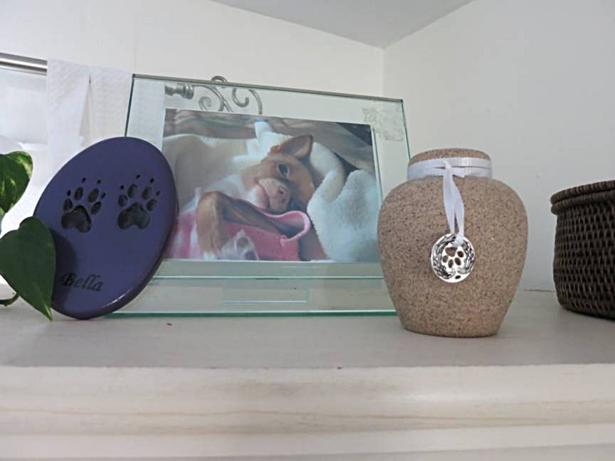 I had Bellas paw prints done in clay so didn't bother getting a medallion for her urn....Today when I went to see a client she handed me a small wrapped parcel and said " I wanted to get this for you, for Bellas urn "..It is a medallion with " You left paw prints on my heart " engraved on the back....I was so touched...I am still a bit weepy over it.