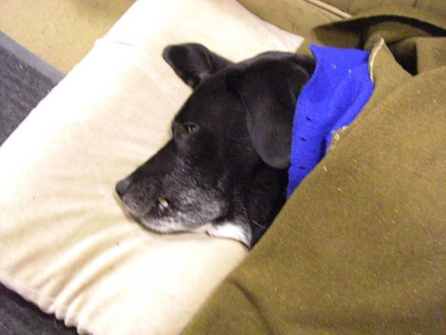 It's funny how many black labs and lab mixes have that white patch on the chest/neck. Our mix does, and I see it a lot. I wonder where it came from.