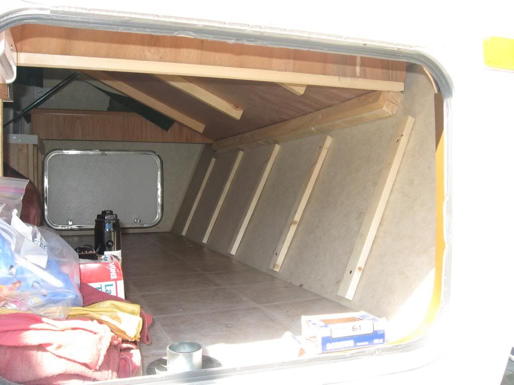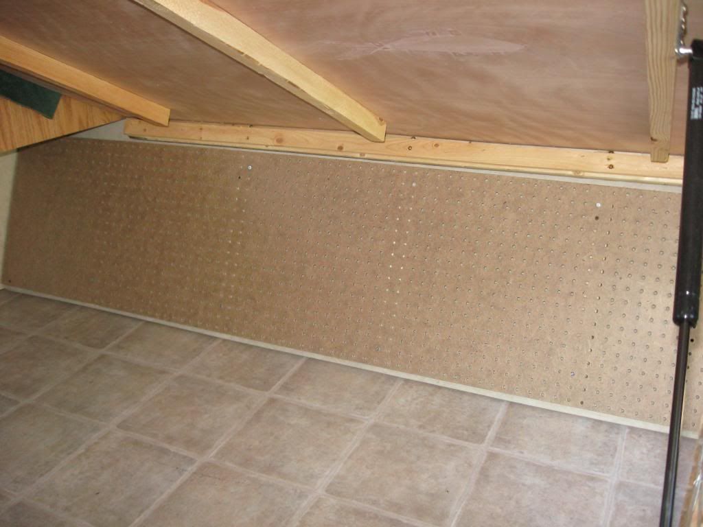 - opnspacesNavigator IIII put pegboard up in my front pass through and I hang the hose and power cords from hooks. I also hang my awning tool, stabilizer wrench, and power tongue jack wrench, and a fireplace poker stick there. It was fairly simple I just used some screws that stuck out of the 1 x 2 pine and screwed into into the 2 x 2 wood that the trailer is framed with.
