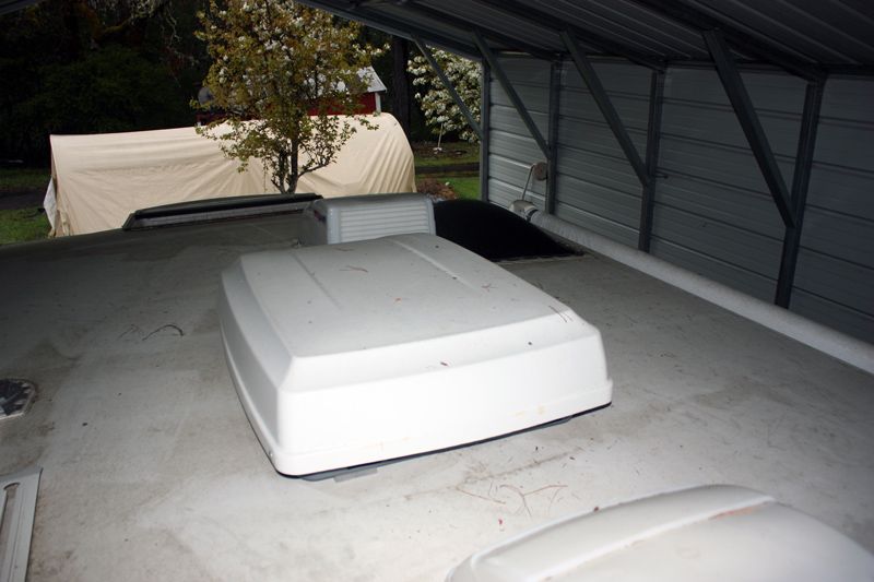 Another angle, AC, bathroom vent cover and bathroom skylight.
