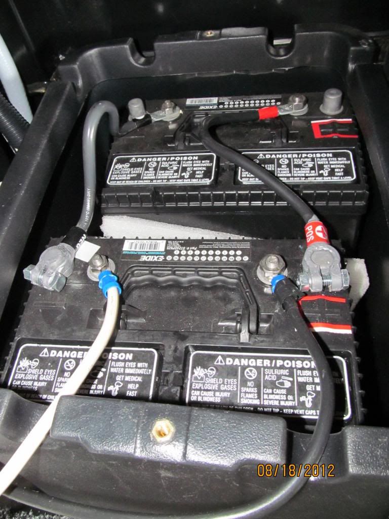 I am using this for my 2 12V batteries - purchased it because I will go to 6V batteries when the 12V die. I took the vent hose off the original battery box. Put some foam on the inside on the sides of the batteries to keep them from moving in the box. Cables to connect the two batteries were purchased at an auto parts store. I marked the top of the batteries and cables to ensure someone does not install the cables wrong. The battery box is bolted in place - 4 bolts.