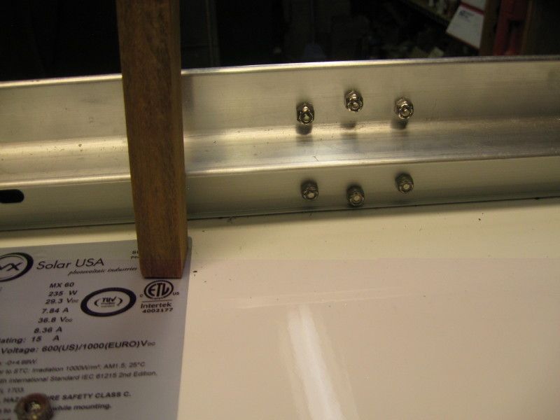 My bad. Changed the design of PV mounts after had already drilled holes in the frame. So the panel is a lot lighter now, and plenty of ventilation :)... Big panel, 60x40", 40 lbs. I can see how it flexes when I lift one corner, though it probably would without my holes too. Since it will be tilted, frame strength may become an issue.