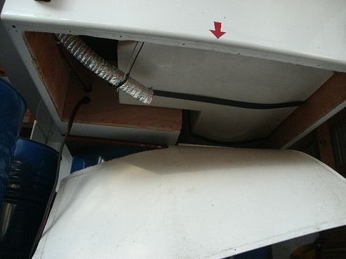Interesting to find the 50 gallon water tank suspended by seatbelts. Able to be rocked to and fro a little. The manual claims structural damage by filling to fast. I did that once and feared the worst. Seeing the suspension system was a relief. There are no structural members to fracture. I do not believe the tank has been removed or replaced. The webbing screws are on top of the tank impossible to reach. That is a LOT of weight to hang from straps.