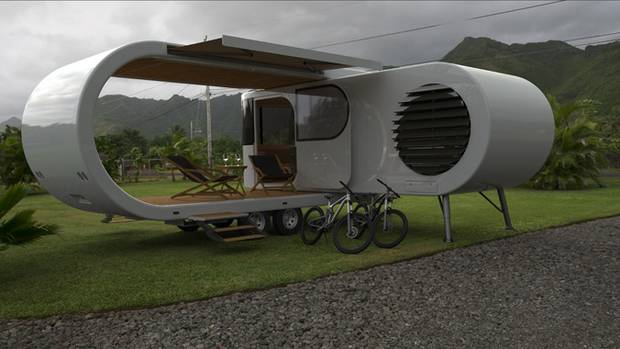 - If the patio swings to the back and extends beyond the main house, you could use it as a toy hauler. That would also leave the front roof available for air/con & hatches. - opnspacesNavigator IIIWow I'm impressed by that. I can't see it fitting into most of the campsites I know, but somebody really has an imagination. I wonder how it fares in a good cross wind.