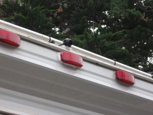 I mounted the camera at the edge of my rear roof, on a small plastic block I glued to the aluminum roof. Ran the cable along the railing to the fridge vent. Down the vent and into the exterior fridge compartment. Also put the camera transmitter and remote wiring harness in the compartment and wired it to the 12vdc fridge terminal block. I did shorten the harness so it didn't take up so much room. So, no holes drilled at all and no wiring to the truck.