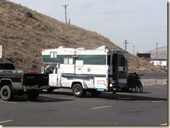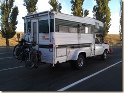 Mason wandered over to the gas station to buy a bag of ice so we could chill the little red ice chest of water and soft drinks that we carried in the cab of the truck for the day while I packed in and battened down everything to get the camper back on the road.
