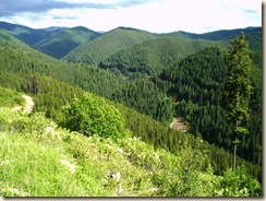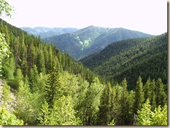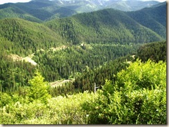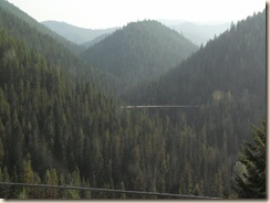 As you ride the grade down, you skirt along the edges of the Bitterroot Mountains, with vistas of the mountains and valleys still far below. There are no guard rails along this ride, so be certain to keep your bike under control, going off the edge here is one hell of a drop