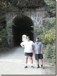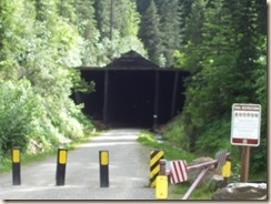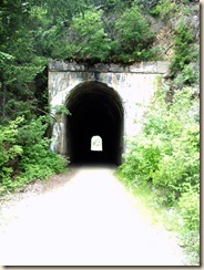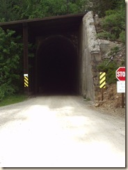 The tunnel has no lights of it’s own, one must provide lighting on their bicycle. When I had ridden this trail back in 2005, I still had batteries for my mountain bike’s two big onboard headlights. Sadly, by 2012, the rechargeable 6 volts were long gone and I forgot to bring the bag that the batteries ride in with me on the trip!