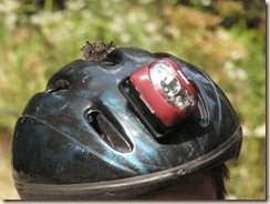 So, our solution was two LED high power Head lamps that we jury-rigged to mount through the vent opening on our bike helmets. In hindsight, I should have forgone the elastic strap and just duct taped the damned thing in place, as it fell loose by the time I was a quarter of the way through the tunnel.