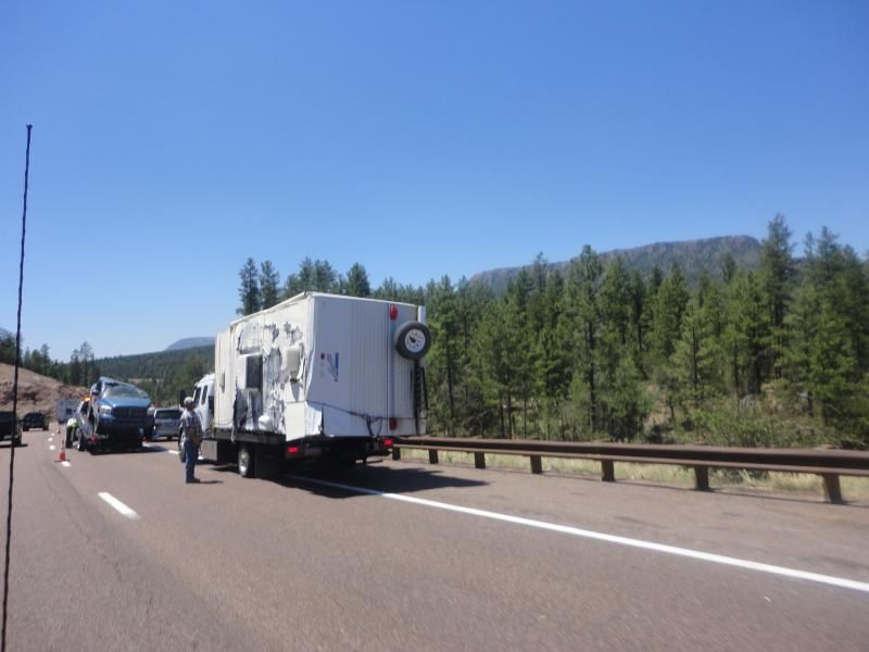 I saw the aftermath of this accident while driving out of the mountains near Pine Mountain Club, California. There were gouges in the pavement where the truck (It might have been a Chevy Avalanche)and trailer (Sierra) rolled across the highway. For those of you who are familiar with highway 166 west of Maricopa, this would have been at the bottom of Grocery Grade heading on the downhill towards Maricopa. My wife's statement: "OMG, I bet they had did not have sway control bars." As we drove by, I could not tell either way.