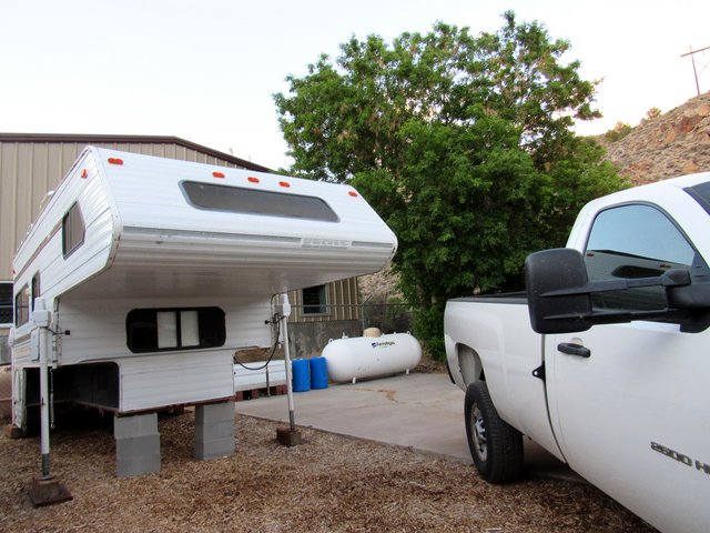 After a good washing yesterday I got up early (while the camper is in the shade and the temp has not exceeded 100--yet) to put a good coat of Meguiar's Marine/RV one step Cleaner Wax on. I'm a huge fan of Aerospace 303 and use that in-between full waxes. I think it has made a huge difference in keeping the gel coat shiny.