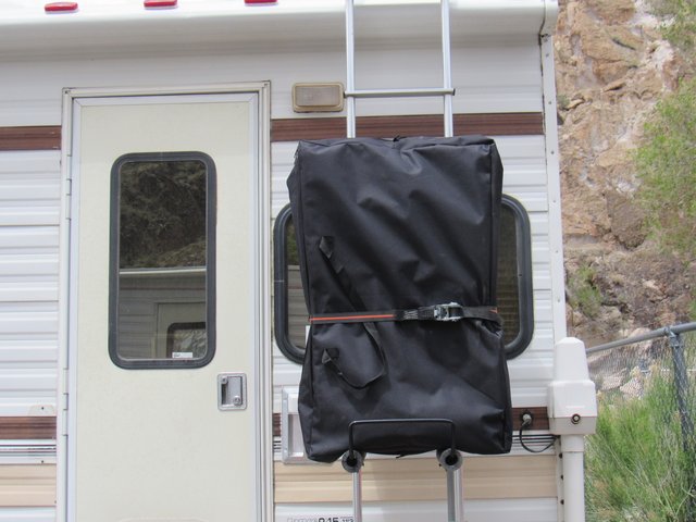 After a good washing yesterday I got up early (while the camper is in the shade and the temp has not exceeded 100--yet) to put a good coat of Meguiar's Marine/RV one step Cleaner Wax on. I'm a huge fan of Aerospace 303 and use that in-between full waxes. I think it has made a huge difference in keeping the gel coat shiny.