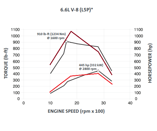 Yeah, doing the math and doing a rough overlay where the Cummins torque/hp would be over the L5P graph above, it is clear to see that the Cummins turbo is utilized for more low-end power and the L5P probably uses a larger turbo that comes on later for more top-end power. Nother wrong with either, just depends on where you want your power.